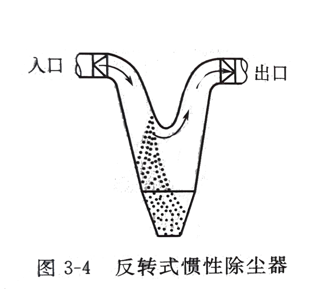 慣性除塵器結構形式多樣,主要有反轉式和碰撞式,圖3-4和圖3-5表示的即為反轉式和碰撞式慣性除塵器的結構示意。